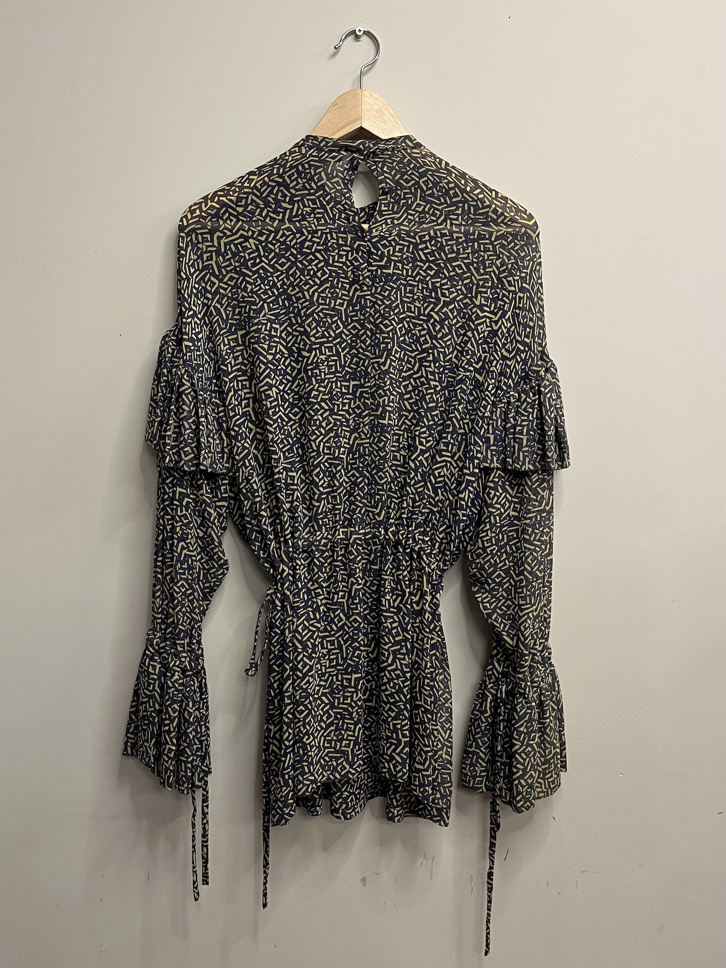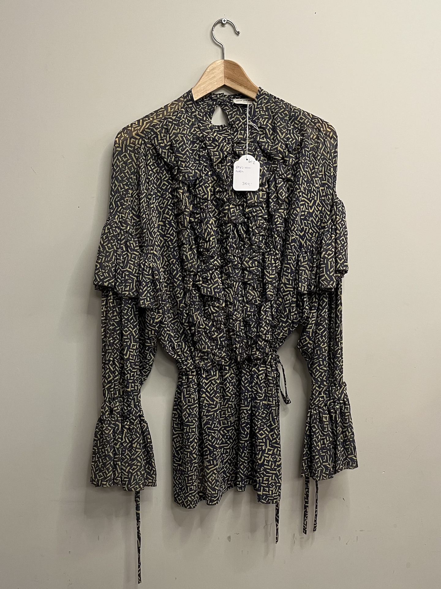 Dries van Noten – Groen beige geprinte jurk met touwtjes (kl.2)