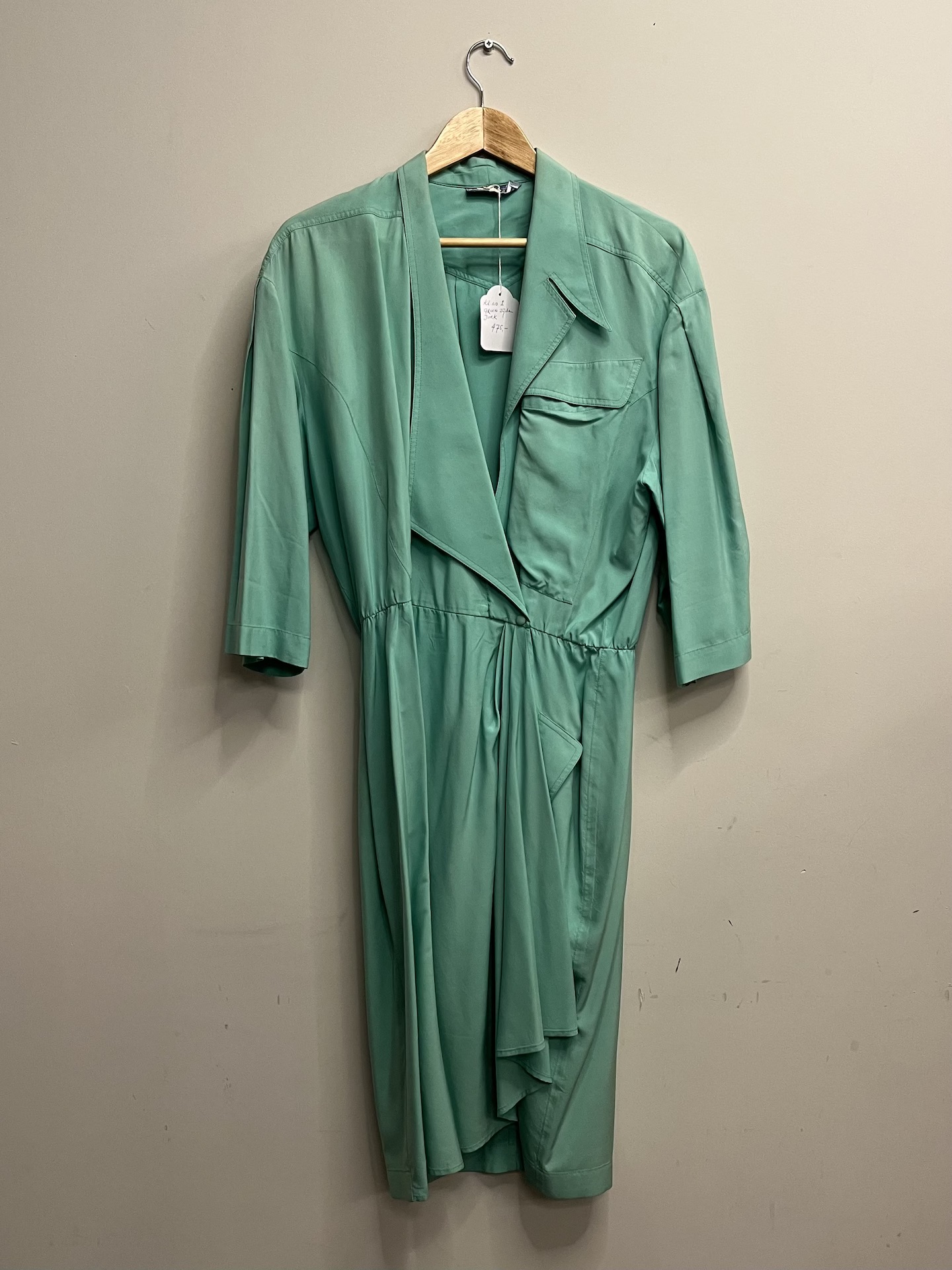 Thierry Mugler – Turquoise zijden jurk met riem (kl.1)